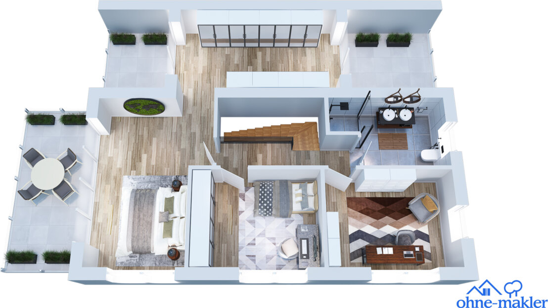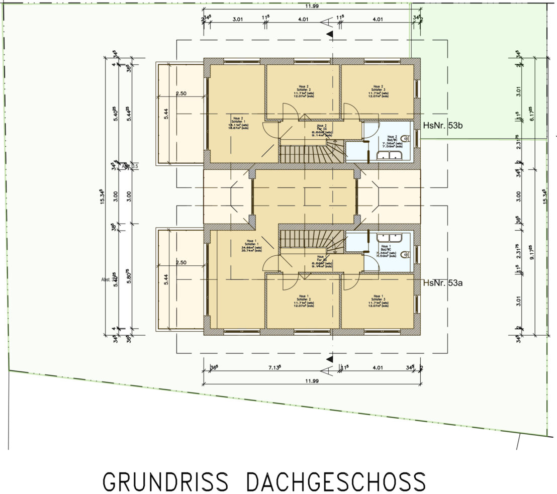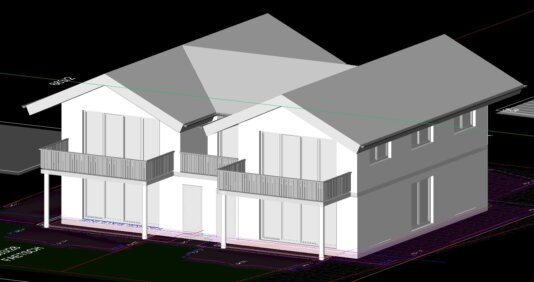 mit Planung von zwei verbundenen Einfamilienhäuser